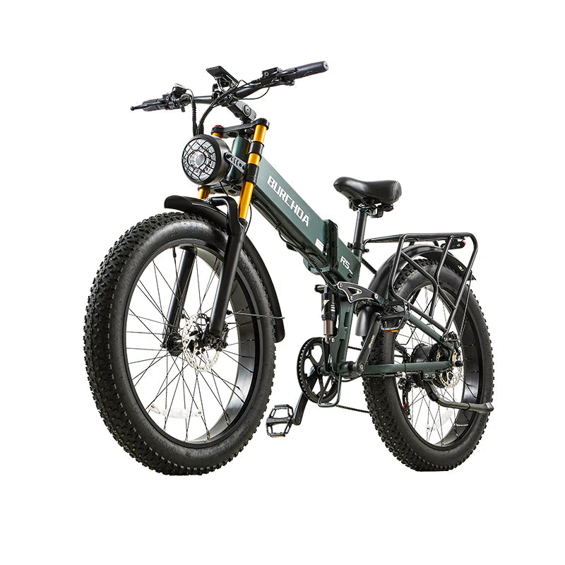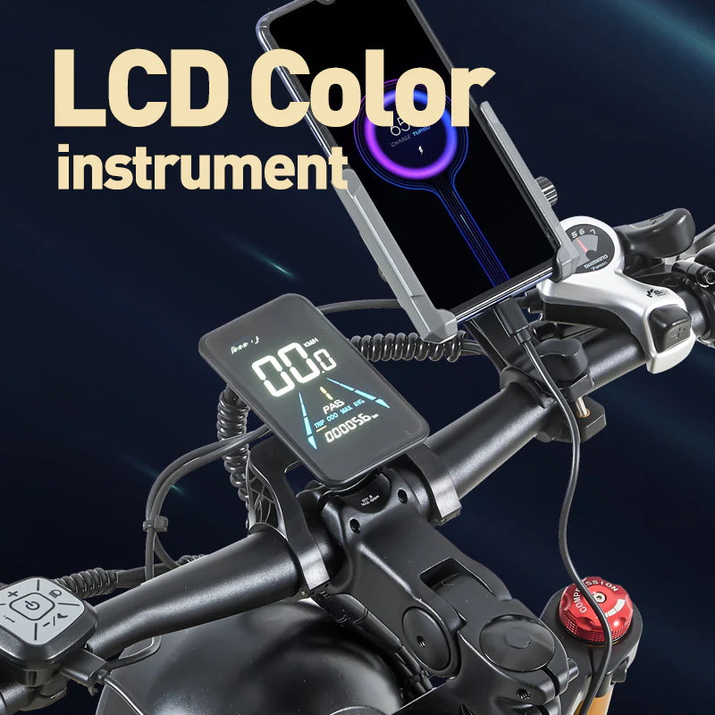 The R5 PRO electric bike is made of high strength aluminum alloy frame. The battery is inside the frame and can be taken out for charging or charged inside the frame. It is space-saving, safe and durable, and also gives the bike a more attractive design. The operating area has a switch, light, horn, indicator and speed button. A hydraulic brake and a power-off system are part of the R5 PRO e-bike. When you brake, the e-bike will cut off the power and activate the braking system. Quick stop to ensure safe driving. R5 PRO adopts double shock absorption system with 26*4.0 inch large tires, which makes the vehicle have good shock absorption effect on daily roads and can better adapt to various road conditions such as snow, road, beach and mountain.